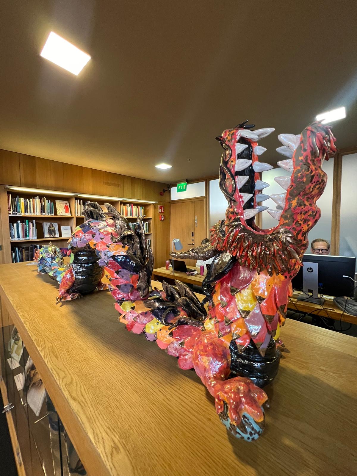 Näyttelyssä on myös lapsille ja lapsenmielisille oma askartelupiste, jossa voi luoda oman lohikäärmeen.