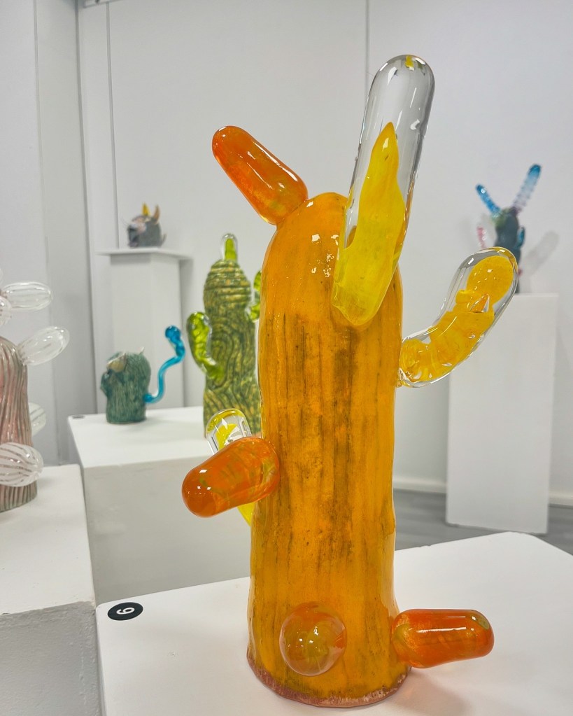 ANemiko Art´s sculptural work merges glass and ceramics in an experimental and innovative way. The pieces incorporate waste from glassblowing, recycled glass, and broken ceramic objects, giving discarded materials a new life as unique and expressive sculptures. A naive and playful aesthetic is central and vibrant colors creating a sense of storytelling and organic dynamism.