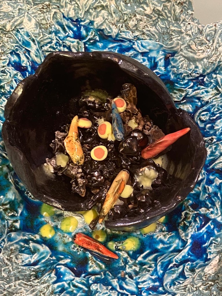 ”Laavasta nousee häntä jos toinen, kuumuus vaihtaa värinkin moinen. Lasi sulaa, keramiikkaan taipuu ja yhdessä ne tarinaksi vaihtuu.”